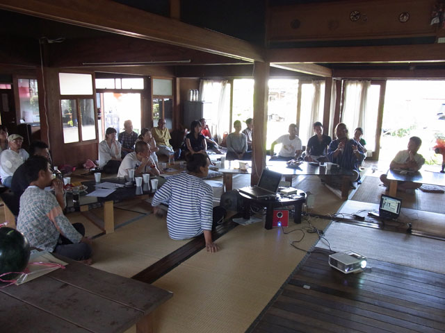 暑い中での報告会となりましたが、大きな古民家の座敷部屋でリラックスした雰囲気の中始まりました。