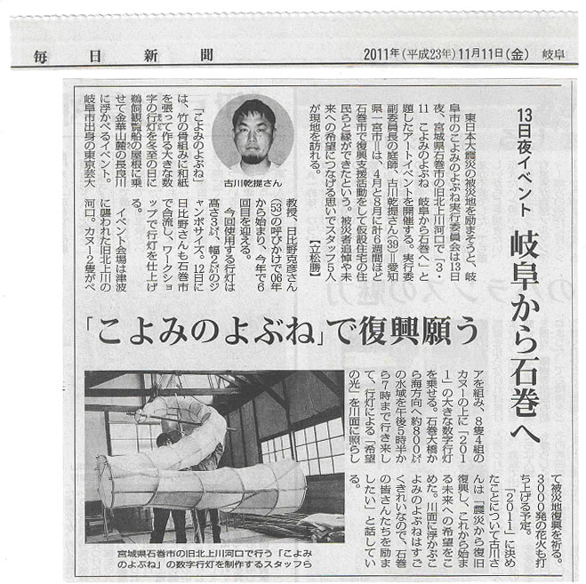 新聞掲載: 岐阜新聞、毎日新聞、石巻かほく新聞、石巻日日新聞