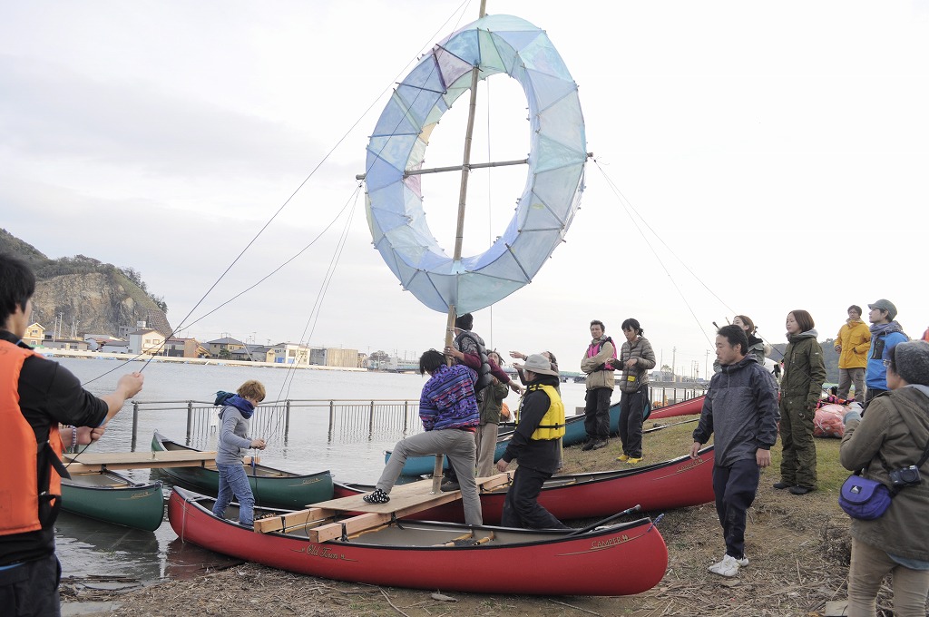 最初はまったく飲み込めず自分の体がこの言葉を拒否していたが、時間と共に体の中に浸透していった。何があっても人は水なしには生きられない。なら自分達が毎年目にしている水のうえでの美しい景色を運びたい。場所は庭JAPANプロジェクトでずっと活動している石巻の津波が遡っていった旧北上川。